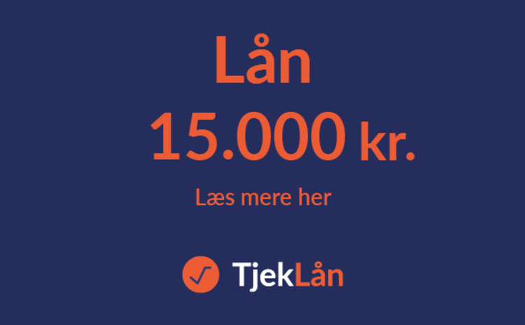 Lån super nemt 15.000 kr. i dag ved at sende en låneansøgning som blot tager et par enkelte minutter, og som foregår 100 % online. Du kan til din egen fordel anvende Tjeklån`s låneberegner, der giver dig mulighed for at beregne det billigste lån. Lån 15.000 kr. her og nu og få pengene udbetalt inden for et par dage og gennem nogle låneudbydere med det samme.